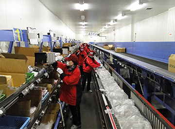 | 日本的生協組織成立於1879年,現在,日本生協的會員總數已超過2700萬人(家庭),年營業額超過新臺幣1兆0076億元,地域生協會員每人每月平均消費11,298日元,平均出資金額31,746日元。生協發展出繳交會費成為會員,以團購方式,利用郵購目錄,電話、傳真與網購等方式,每週下一次訂單,每週配送到家一次,由家庭會員做企畫,販賣安全安心的產地直銷商品,與農民緊密結合,有數十萬個家庭會員,是國內最應學習的生鮮電商商業模式。生協是以家庭或個人宅配為對象,每週推出2500-3000 種商品,包括牛奶、蔬菜、米、水果、肉品、調味品、服飾、海產品等,每日出貨量達數十萬件。在冷鏈環境下,如何快速揀選、最精簡的包材,無庫存低成本的物流,做到最佳效益化。物流現場管理是委託外部協力廠商物流作業,生協只專心選品與品質管理,將自我價值最大化。由產地或各工廠直接送貨到各所屬的物流中心,各類商品在各物流中心揀貨完成後,其中,青果與冷鏈商品裝入塑膠袋,再裝入蓄冷箱中,分別配送到配送中心,在配送中心將青果、冷鏈食品與常溫商品集合後,統一宅配到各會員處,將塑膠袋自蓄冷箱中取出,交給會員,即完成配送交貨程式。暫存區的商品分別推往各揀貨區域,放入流利架上。青果類到加工區,由人工作品質判斷及篩選,並分包成小包裝方式,再送至揀貨區域。青果商品、冷藏商品與冷凍商品分別放於不同區域,分別採取摘取式揀貨方式,依據電子標籤顯示數量揀出商品,在輸送機一側以發光導引燈方式,指示應放置的箱子。冷凍商品則放置於冷凍庫外側的展示架上,展示架上加裝一個透明塑膠簾,以阻絕冷氣外泄,也同樣以電子標籤顯示數量揀出商品。 |