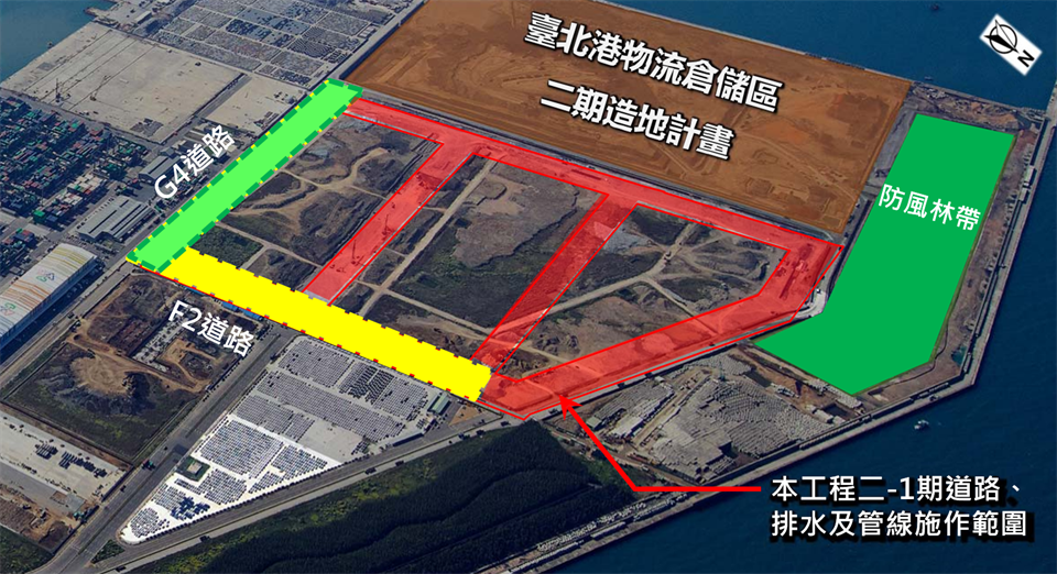 臺北港是以填海造陸的方式造出的人工港,其中物流倉儲區的部分,是長期協助處理臺灣北部地區公共工程土方收容的去處,二期造地更是收容了2,829萬立方公尺的土方,打造近100公頃的土地,同時亦可作為北部物流倉儲業務的重要發展基地,可謂是一舉數得。
