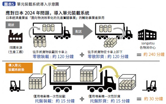 日本壁紙行業龍頭企業sangetsu株式會社,為了改變物流作業效率,獨創了可轉向托盤,將人工裝卸從耗時240分鐘降至30分鐘,裝卸時間縮短至原來的1/8,為深受“2024問題”困擾的日本產業界,提供了效率變革的新典範。