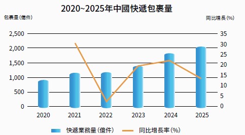 2025年,中國郵政行業寄遞業務量完成2,16 5億件,同比增長11.5%。其中,快遞業務量完成1,990億件,同比增長13.7%。2025年,中國郵政行業業務收入累計完成人民幣1.8兆元,同比增長6.4%。其中,快遞業務收入累計完成人民幣1.5兆元,同比增長6.5%。其中,2025年1—9月快遞業務收入累計完成人民幣10,857.4億元,同比增長8.9%;快遞業務量累計完成1,450.8億件,同比增長17.2%。從2025年全年和前三季度的資料對比來看,第四季度中國快遞業務量呈現環比微增的趨勢,而業務收入則呈現出較大的漲幅。這表明了中國快遞企業第四季度整體業績將會取得不錯的增長。長久以來,中國快遞業務的主要來源為電商業務,此前也曾發生過行業“去電商化”等插曲,事實證明中國電商產業與快遞行業雖然會有互相傾軋的可能,但合作共贏才是發展的主旋律。而且近年來隨著直播電商、內容電商、興趣電商等新興模式的出現,大量中小賣家擁有了更多元化的出貨管道,也為快遞企業業績取得不錯的增長表現提供了基本盤。