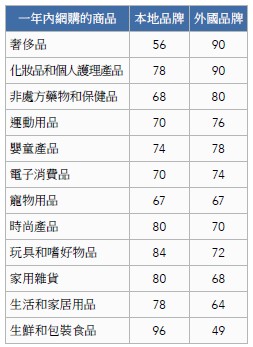 • 在12個產品類別中,選購其中6類時,偏好外國品牌的奢侈品、化妝品和個人護理產品、非處方藥物和保健品、運動用品、嬰童產品,及電子消費品。