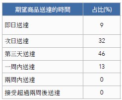 • 購物者有9%希望產品即日送達,另有32%希望次日送達。